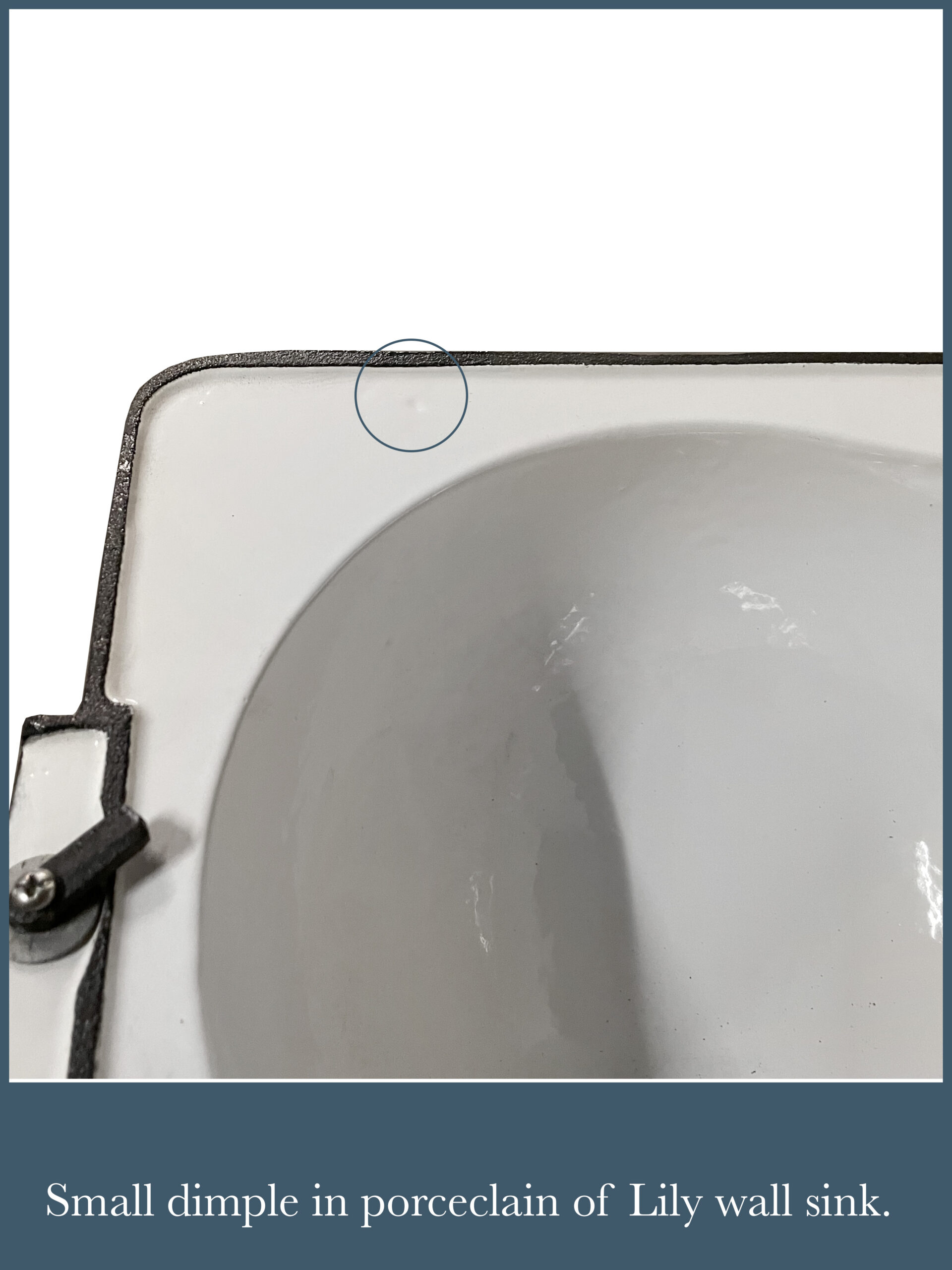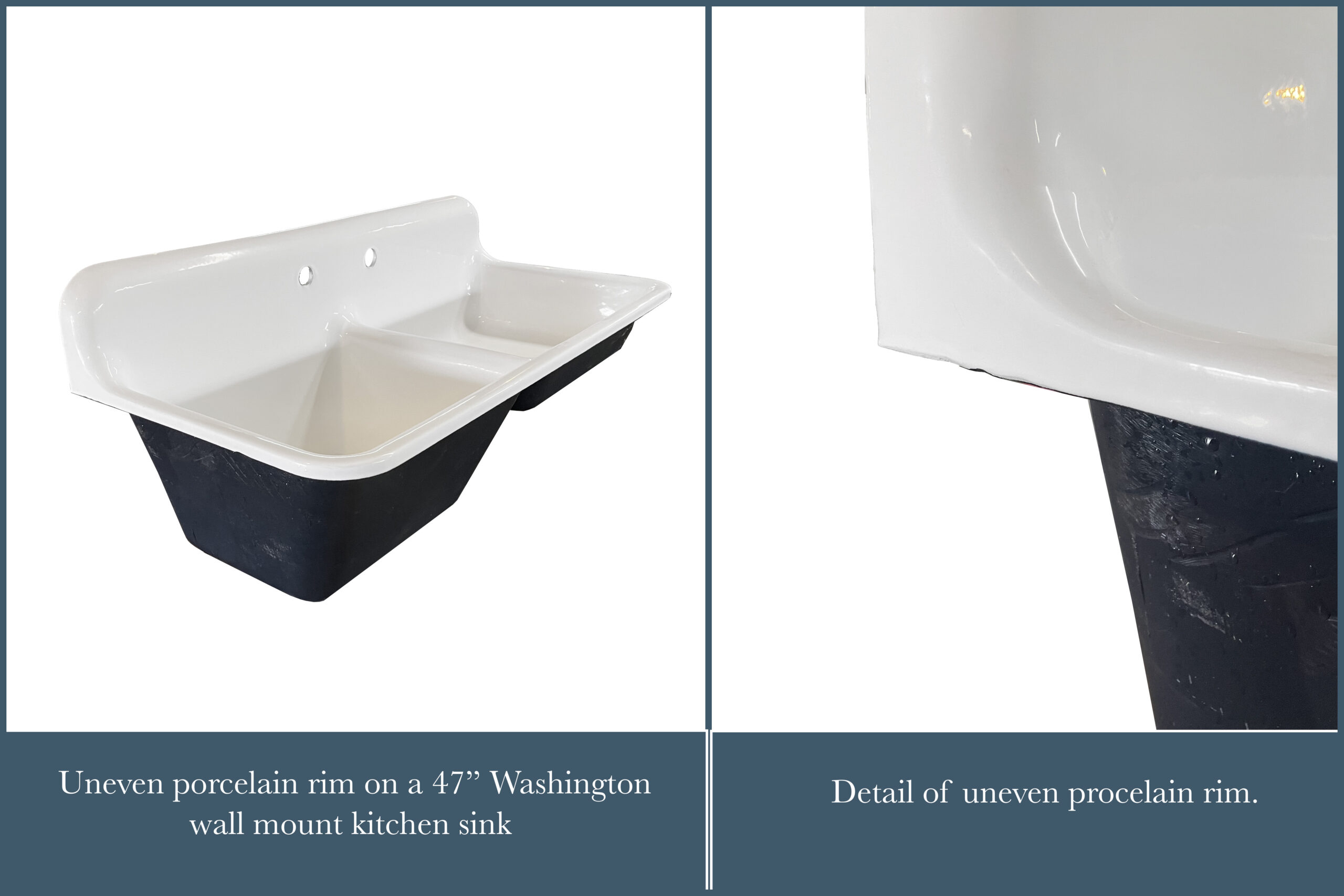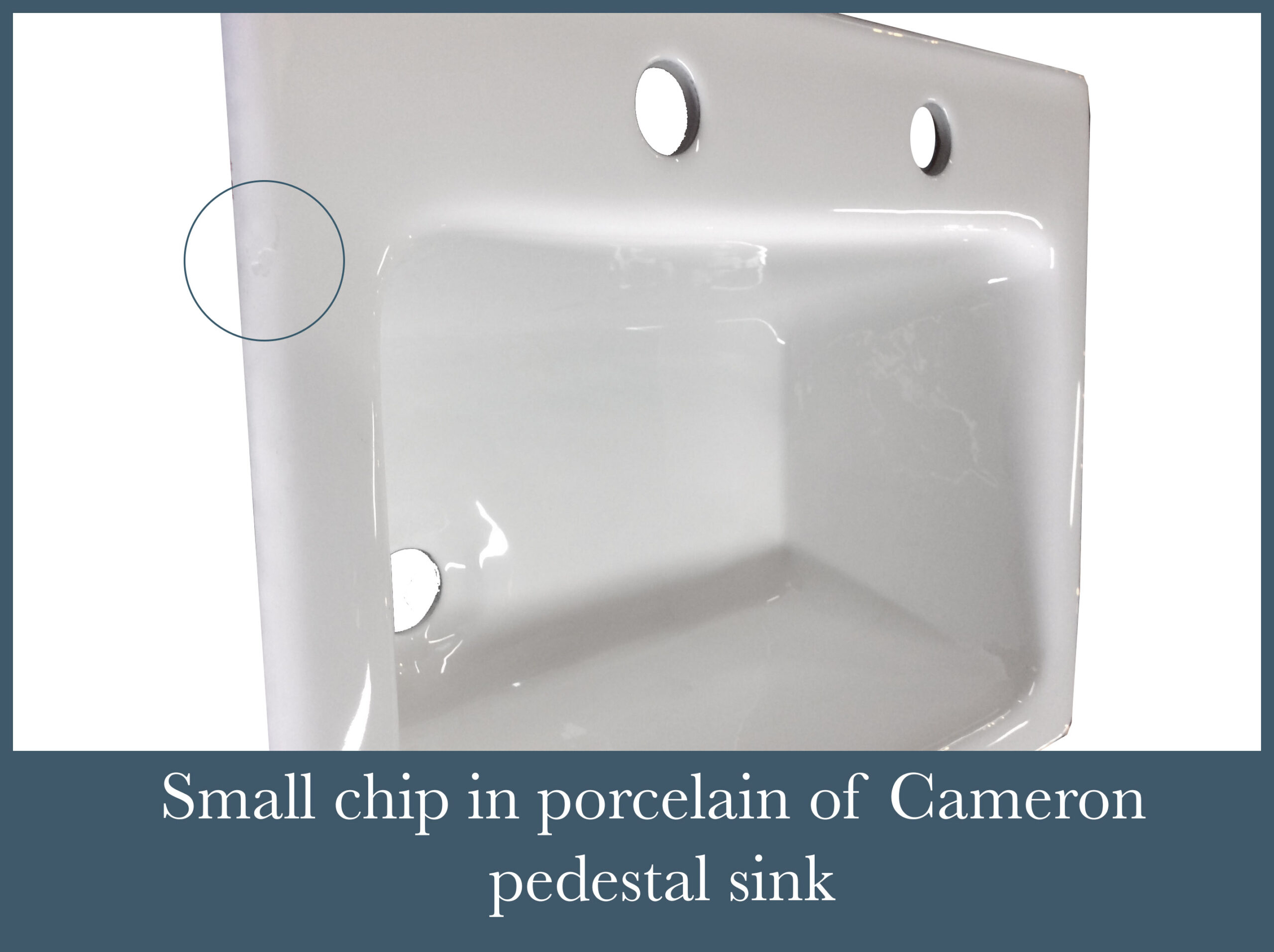 – Small chips in the porcelain that occurred during shipping. These will be very minor, most likely around the trailing edges of the sink or backsplash.