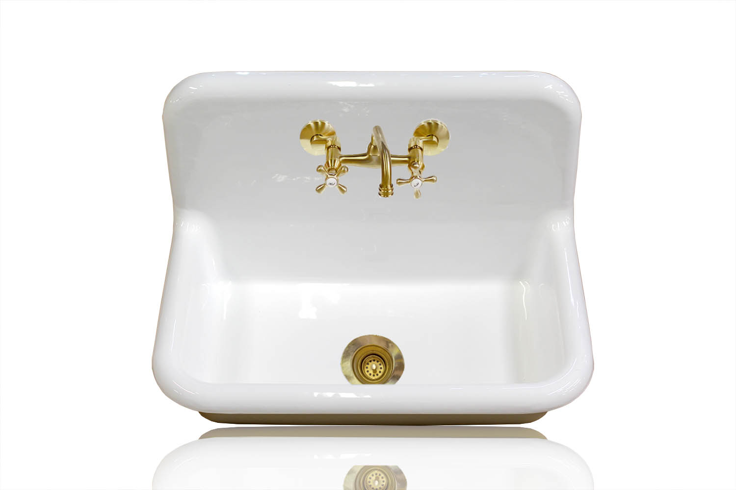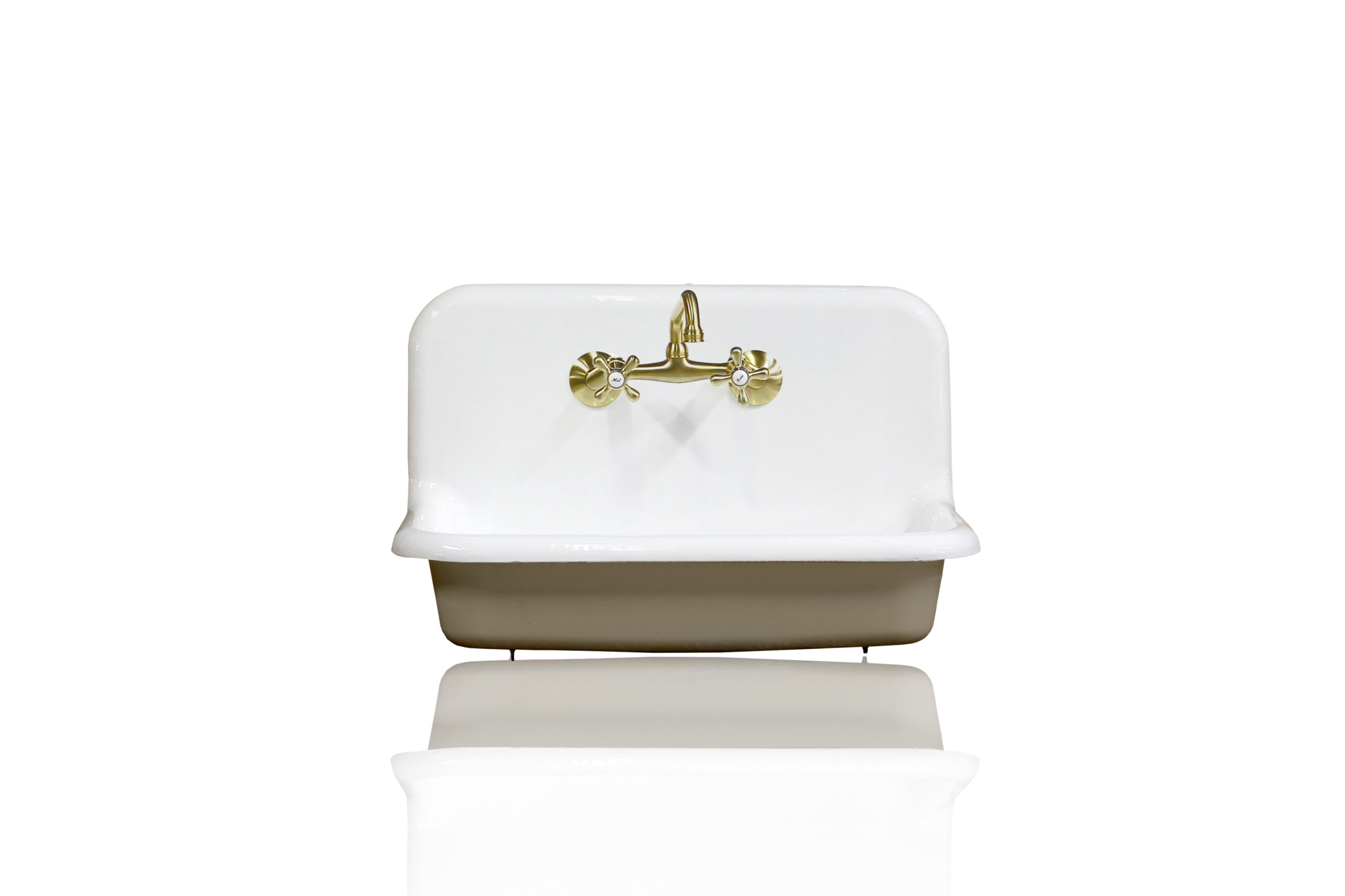 New 30″ Antique Inspired High Back Farm Sink Cast Iron Original Porcelain Wall Mount Kitchen Sink Package Feu De Bois