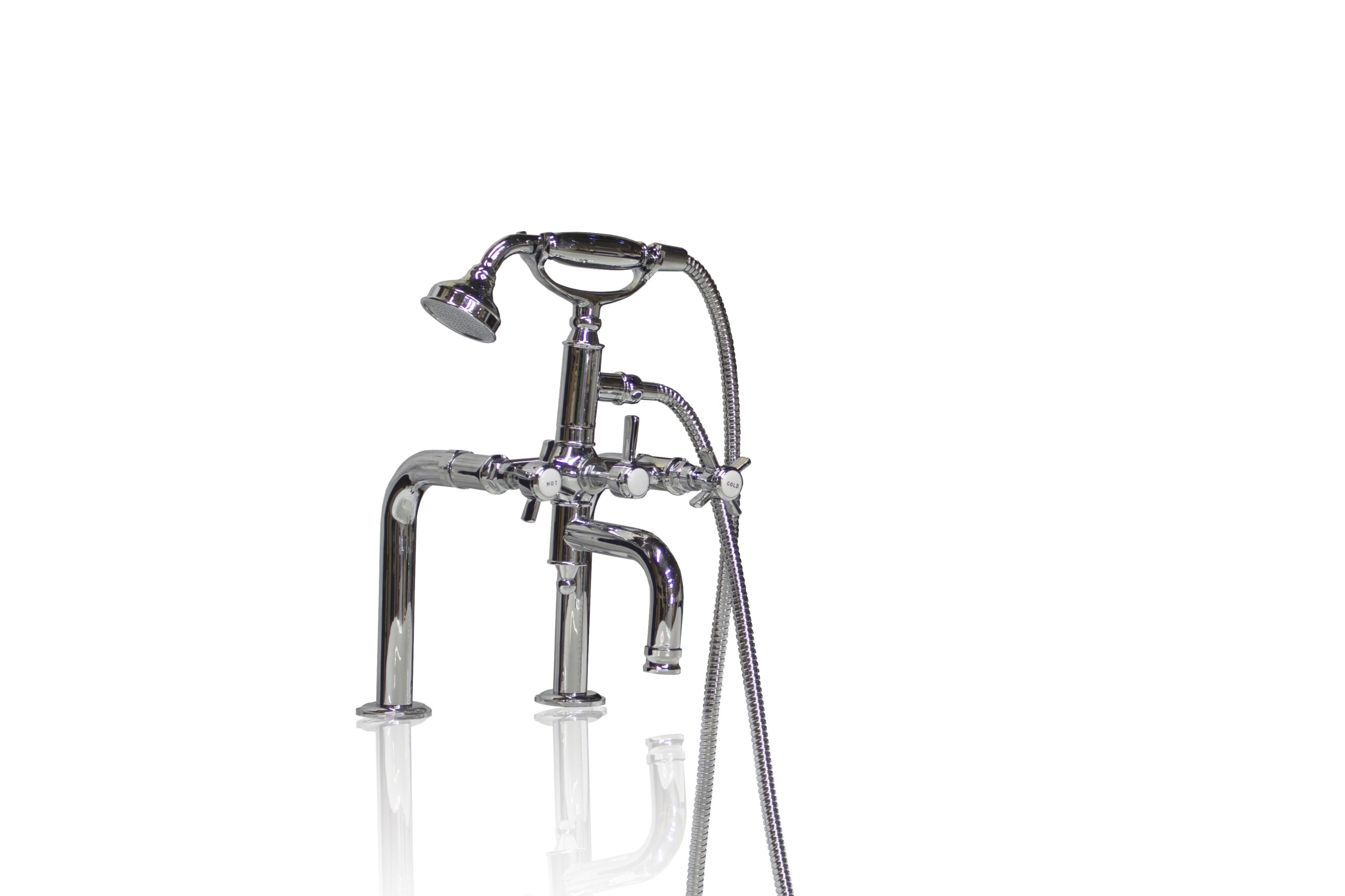 Inspired by the antique tub fillers, our newest faucet is designed to be versatile. With arms that can be extended, our latest faucet can be deck mount or piped all the way to the floor. Available in polished chrome, unlacquered brass or artisan aged brass as shown above.